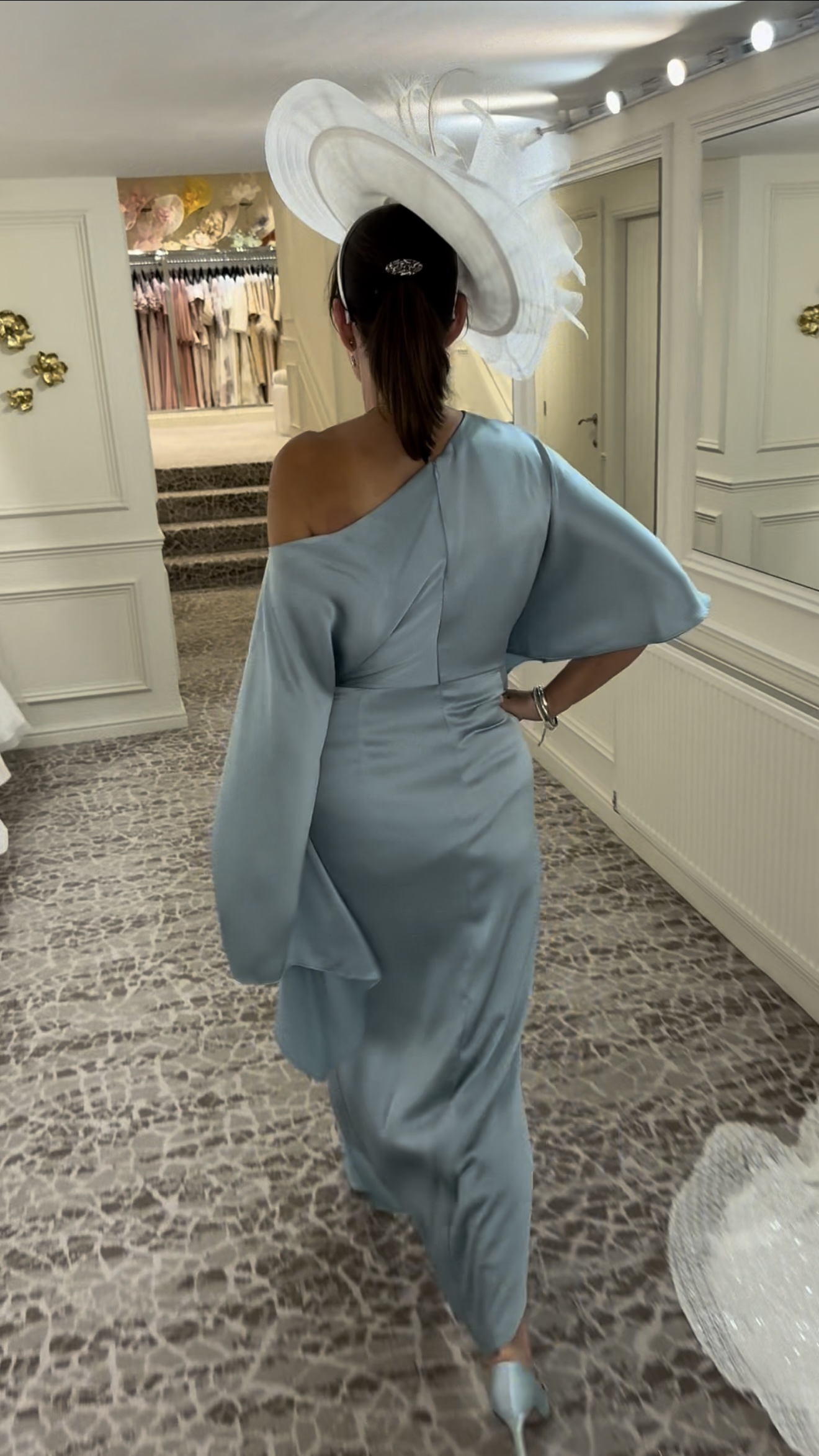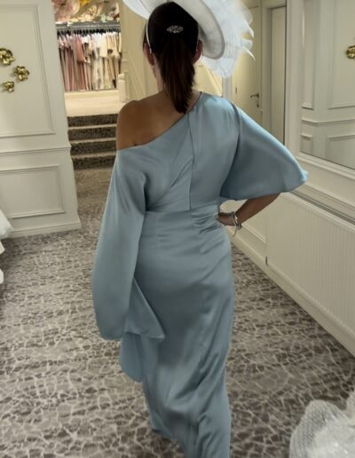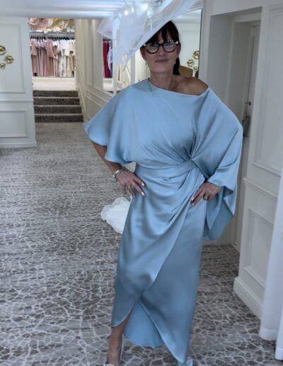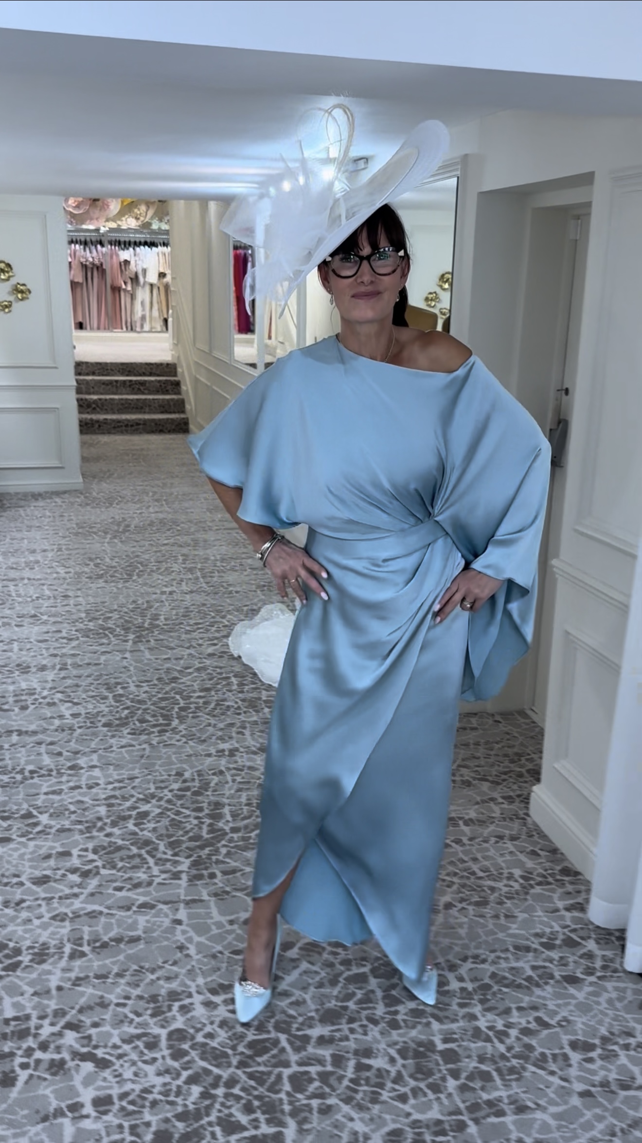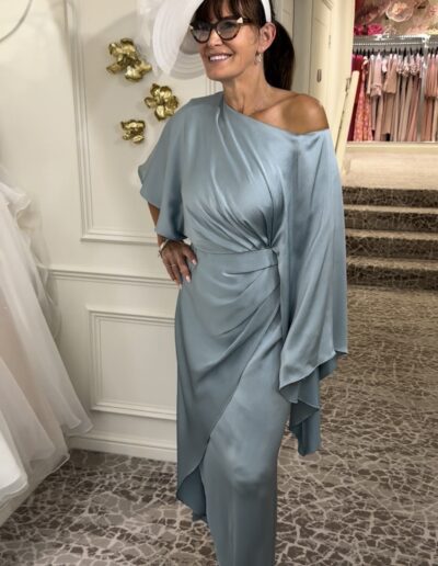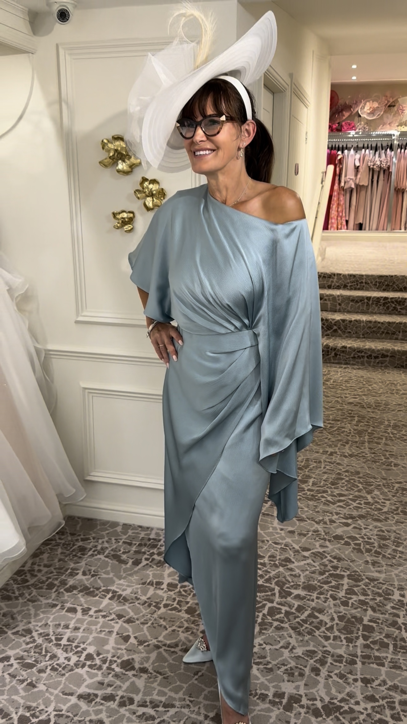 Gorgeous textured satin mother of the bride groom outfit in ‘Ash’ colour.